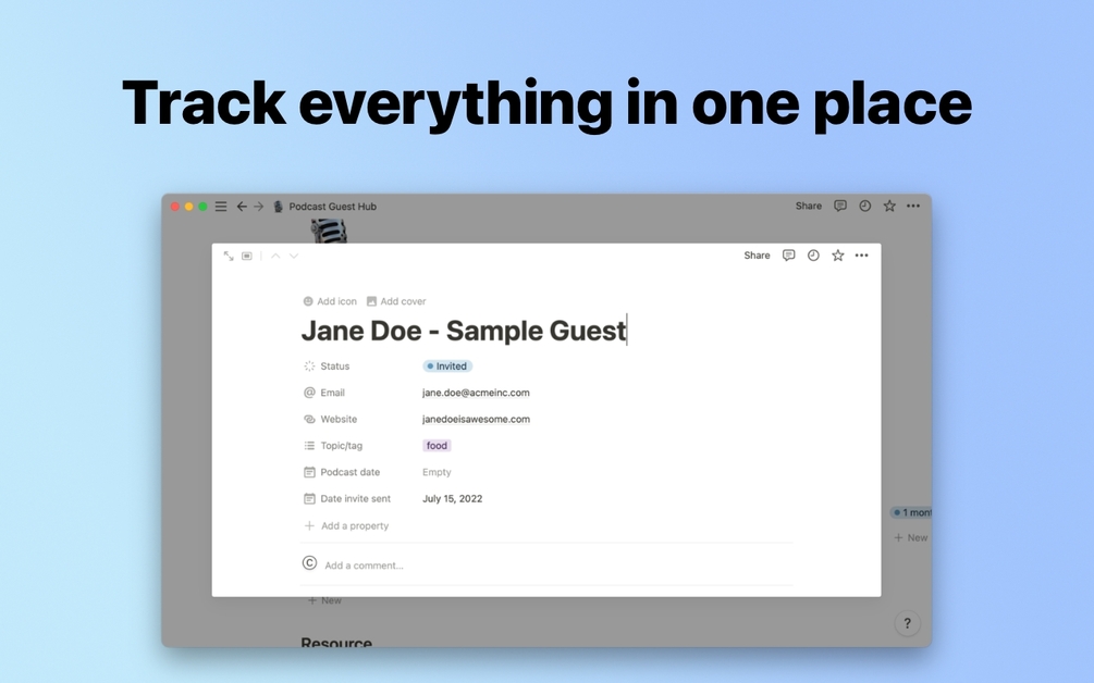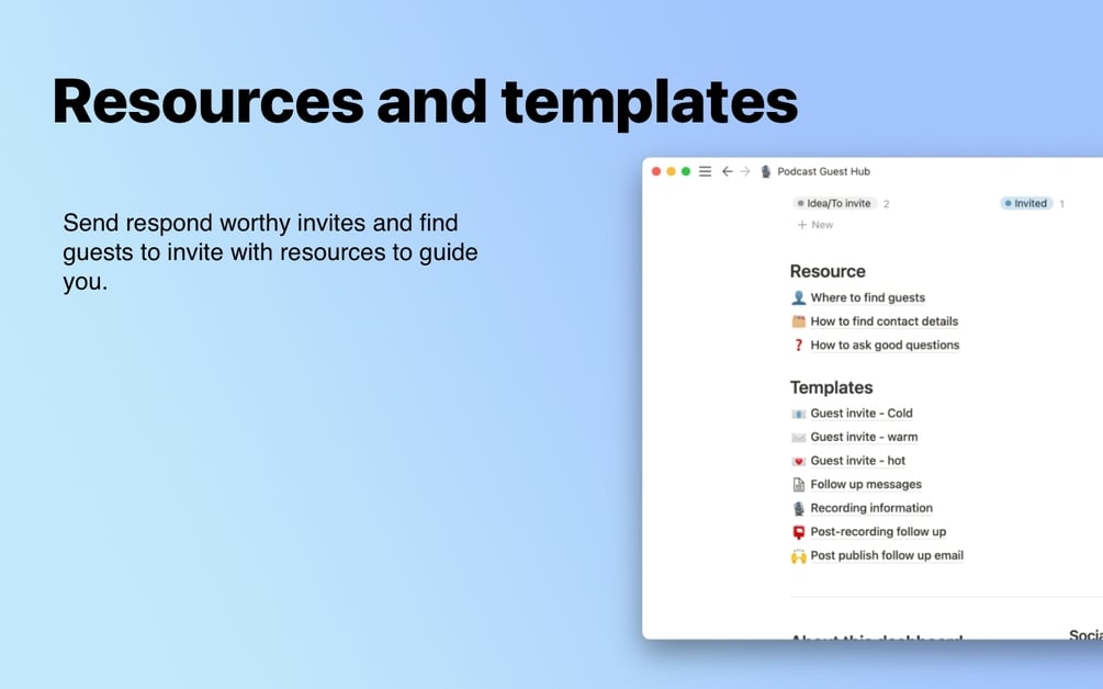 It's an all-in-one notion dashboard with everything you need to plan, invite and manage your podcast guest recordings.